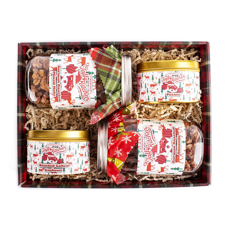 Give the gift of crunch, flavor, and festive cheer with the Nutty Gift Box—only at Frankenmuth Taffy Kitchen.